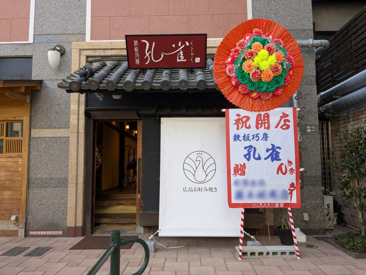 松山市三番町に、鉄板焼きと広島お好み焼きを楽しめる「鉄板巧房 孔雀(くじゃく)」が2025年1月21日(火)にオープンしました!「孔雀」の看板メニューは広島お好み焼き。広島出身の店主が生地からこだわり、キャベツの甘味を活かした一枚に仕上がっているとのこと